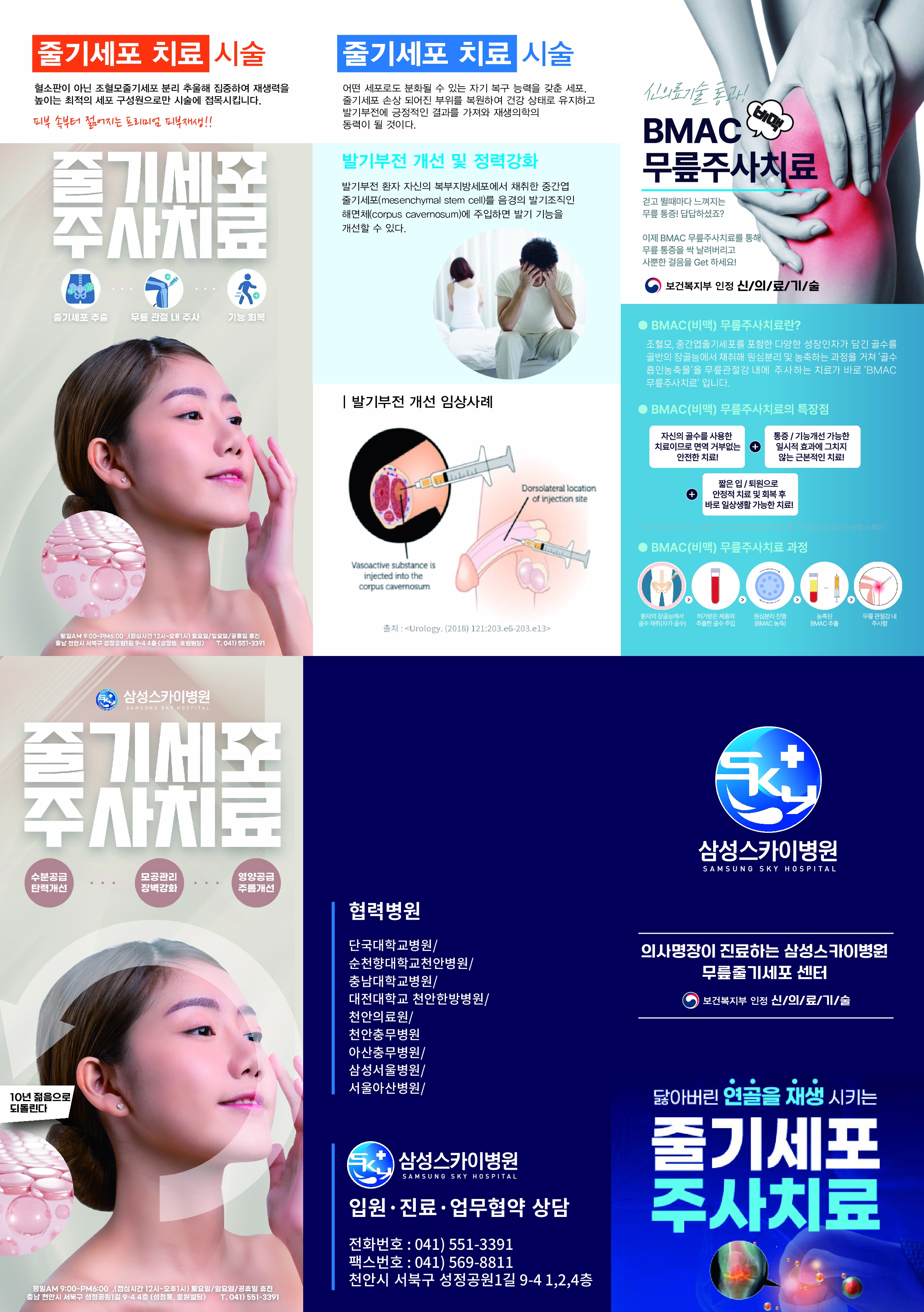 자가골수줄기세포는 환자의 줄기세포를 이용하기 때문에 거부반응 등의 부작용이나 유전자 변이 위험이 없습니다. 또 절개 없이 주사로 치료하기 때문에 흉터 걱정이 없고 시술시간이 30분 내외로 짧습니다.